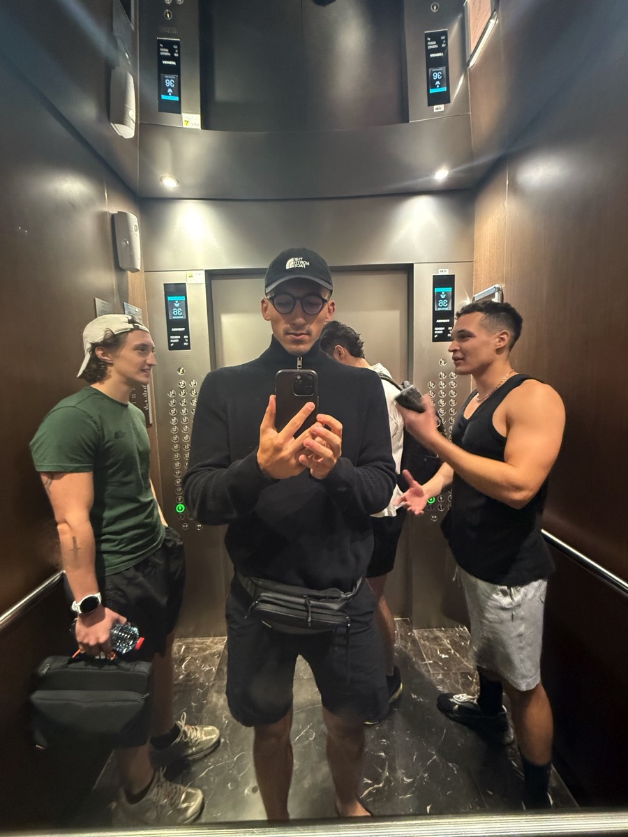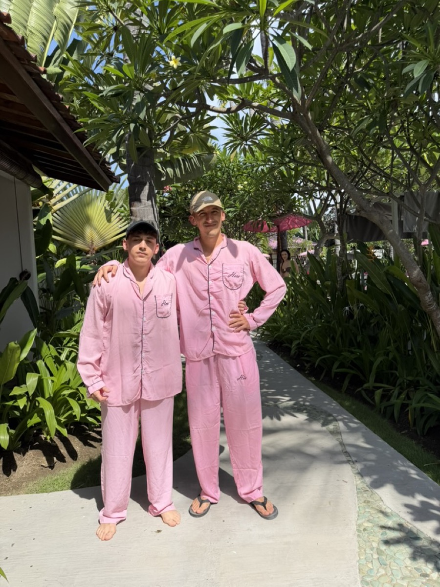 Cette fois, on était quatre : mon pote Enzo de Dubaï, sa copine, Mariia et moi. On est partis avec un magnifique outfit rose :