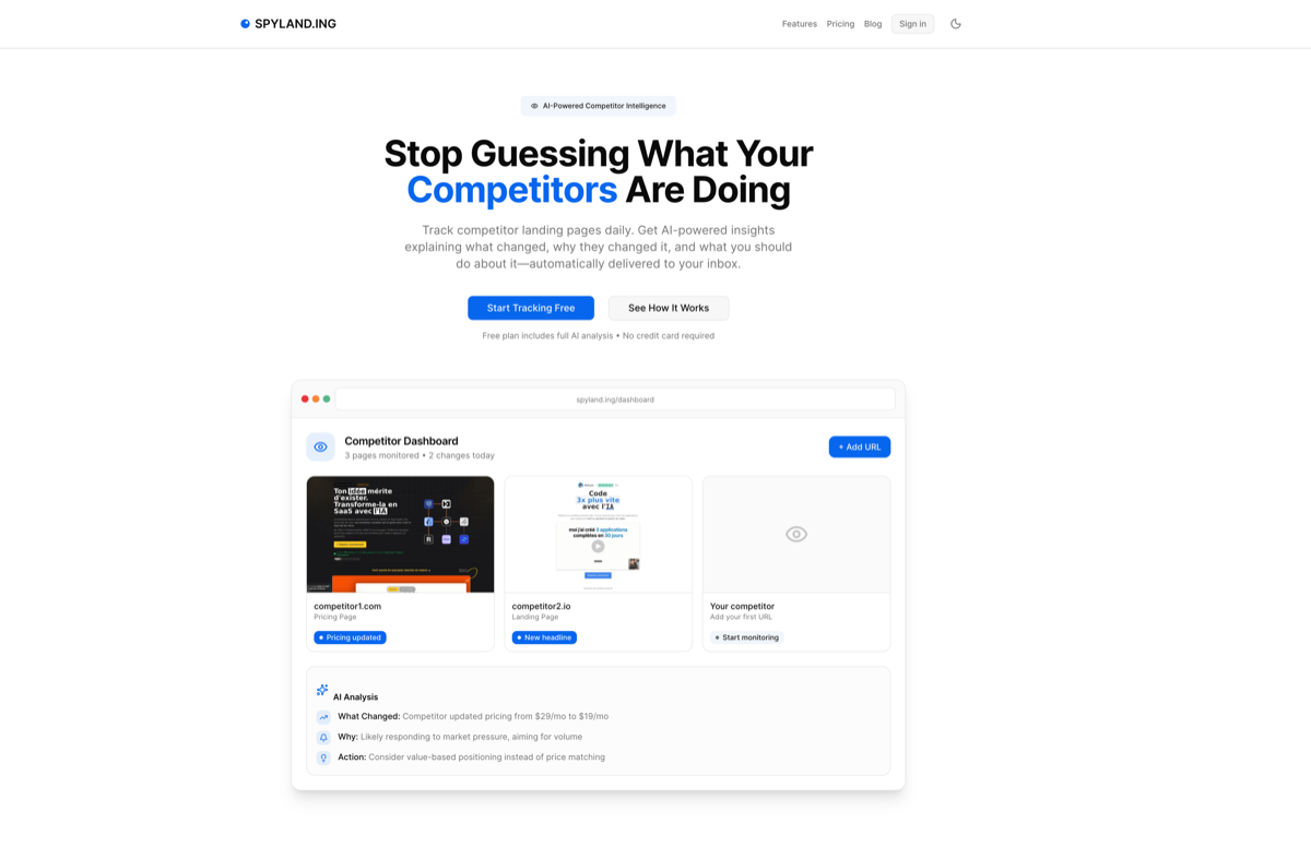 SpyLanding - Un nouveau SaaS que j'ai créé ! C'est un mini outil pour espionner les landing pages des concurrents.