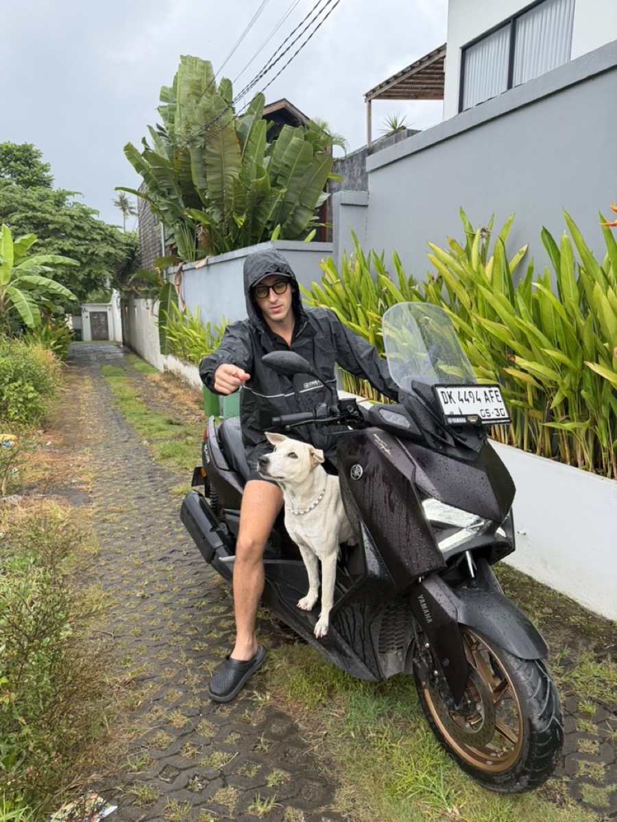 On a aussi eu une expérience assez sympa : un petit chien qui traînait autour de notre villa à Bali.